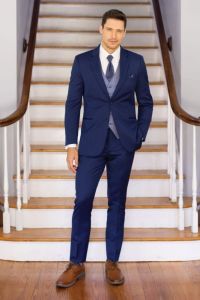 We don’t carry suits or tuxedos for try-on at the shop, since each outfit is custom-made to order. However, we can take your measurements and help you choose all the pieces for your look, including the suit or tux, shirt, tie, vest, shoes, and accessories.